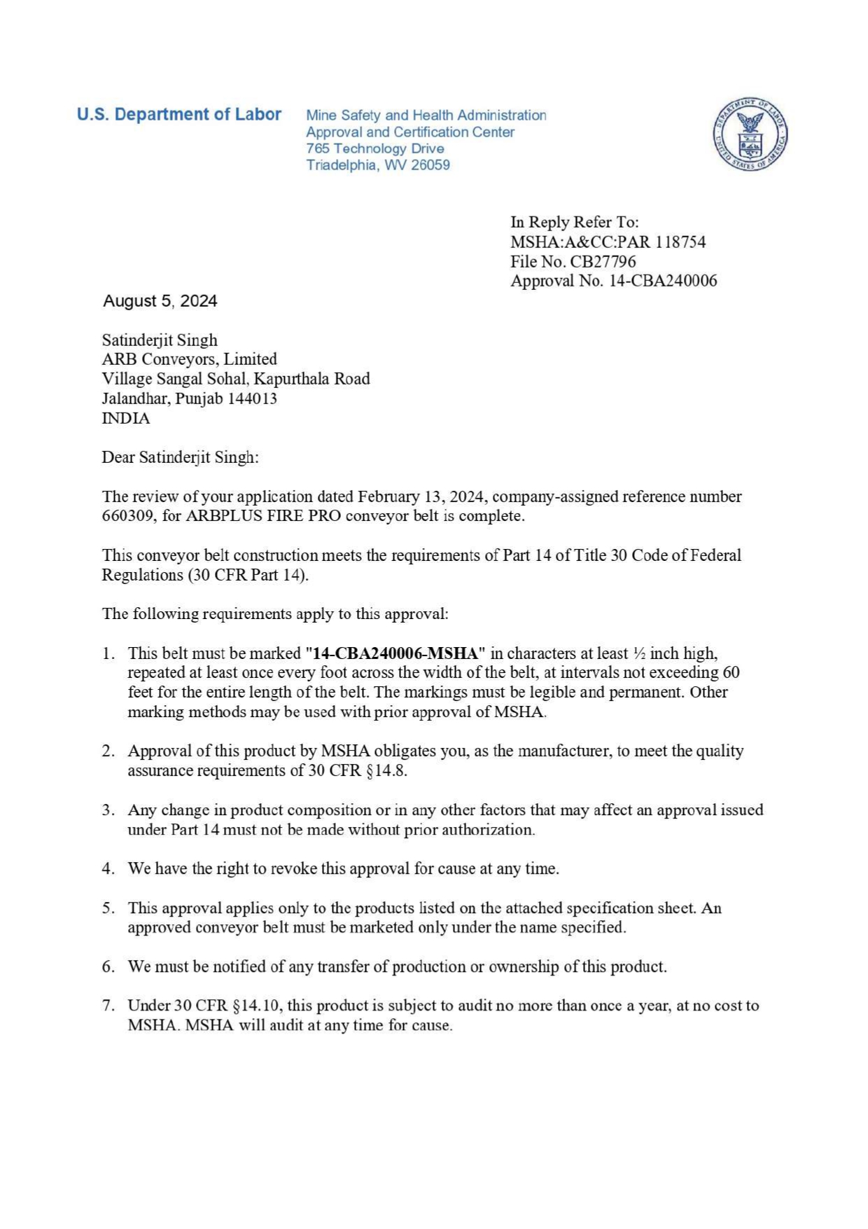 Sporadic occurrences of fire hazards and concern for additional safety prompted ARBCL to design and manufacture fire Retardant conveyor belt. ARBCL FR grade conveyor belts have been extensively used in Thermal Power Plants and Coal Mines in India and abroad. The Fire Retardant properties of the belt are determined in variable before dispatch, by Drum Friction Test, Electric Resistance Test, Flame Test as per provision of various International standard.